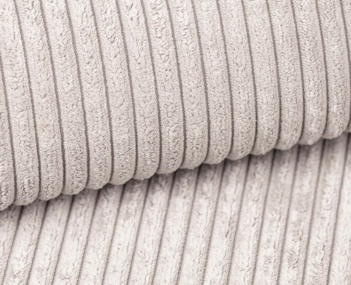 Structure en bois, assise en mousse polyuréthane T30 ressorts zig-zag. Revêtement en velours côtelé. Piètement en bois. Coussins fournis.