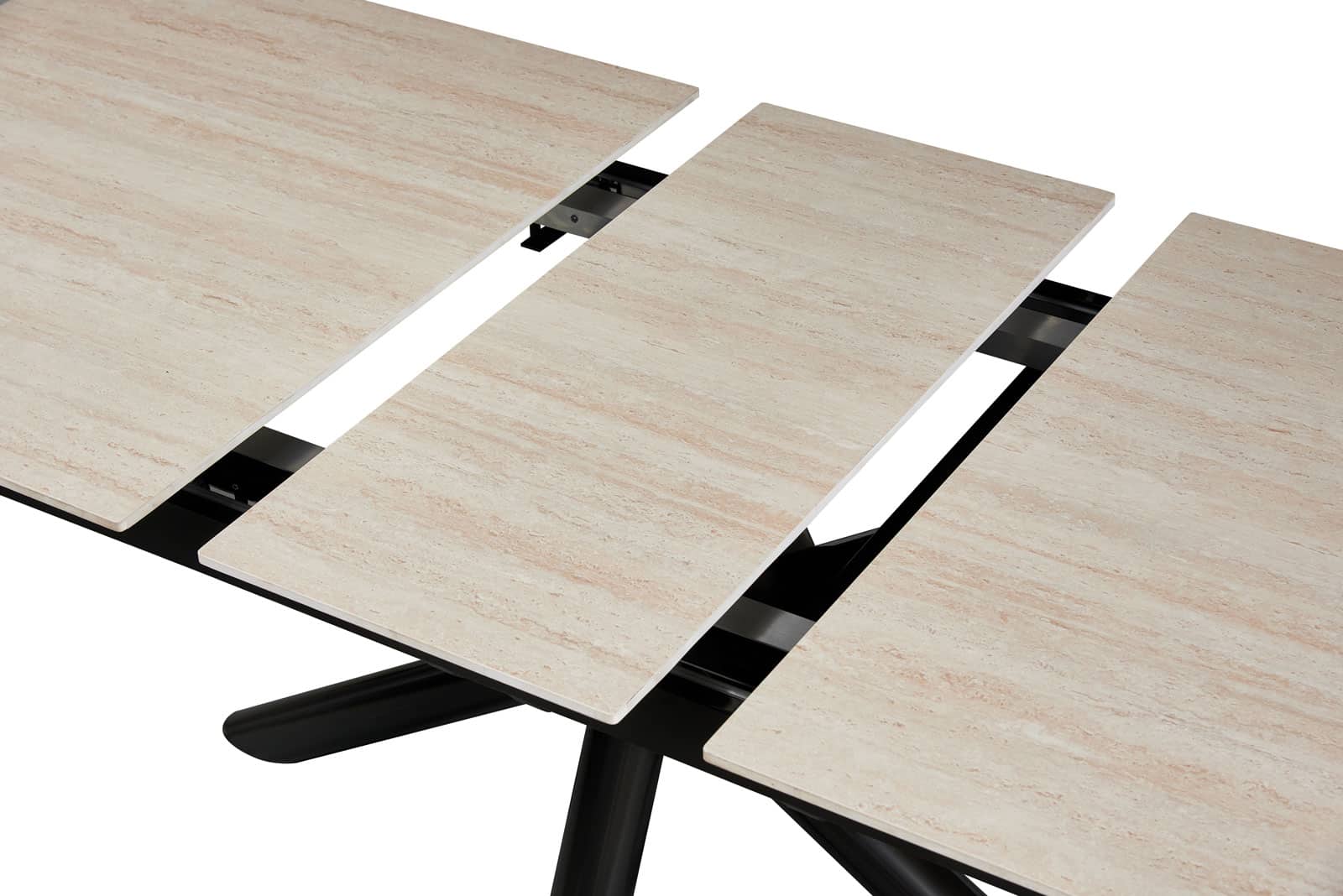 discrètement dissimulée sous le plateau principal. Caractéristiques Couleur (nuance) : Noir Matière : Mdf, Céramique Epaisseur pierre : 6 mm Matière (Piètement) : Métal Finition : Effet marbre Nombre de places : 6 places, 8 places 1 allonge Type de pied : 4 pieds Système de rallonge : Rallonge centrale Utilisation : Intérieur Charge maximale supportée : 100 kg À monter soi-même Dimensions Longueur : 200 cm, 160 cm Hauteur : 76 cm Profondeur : 90 cm : Longueur de la rallonge centrale : 40 cm